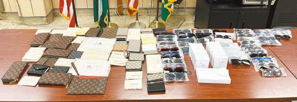 法拉盛街頭假貨橫行,市警109分局於23日在當地展開執法行動,繳獲184件假貨,逮捕3名違規者,並開出4張傳票。