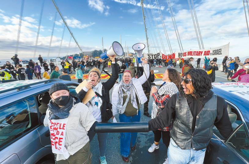 親巴勒斯坦示威者近日不斷示威,上周更堵塞金門大橋等主要公路癱瘓交通,引起民怨。共和黨州議員提案,望提高示威者堵塞公路的罰款一倍,獲得民主黨人支持。