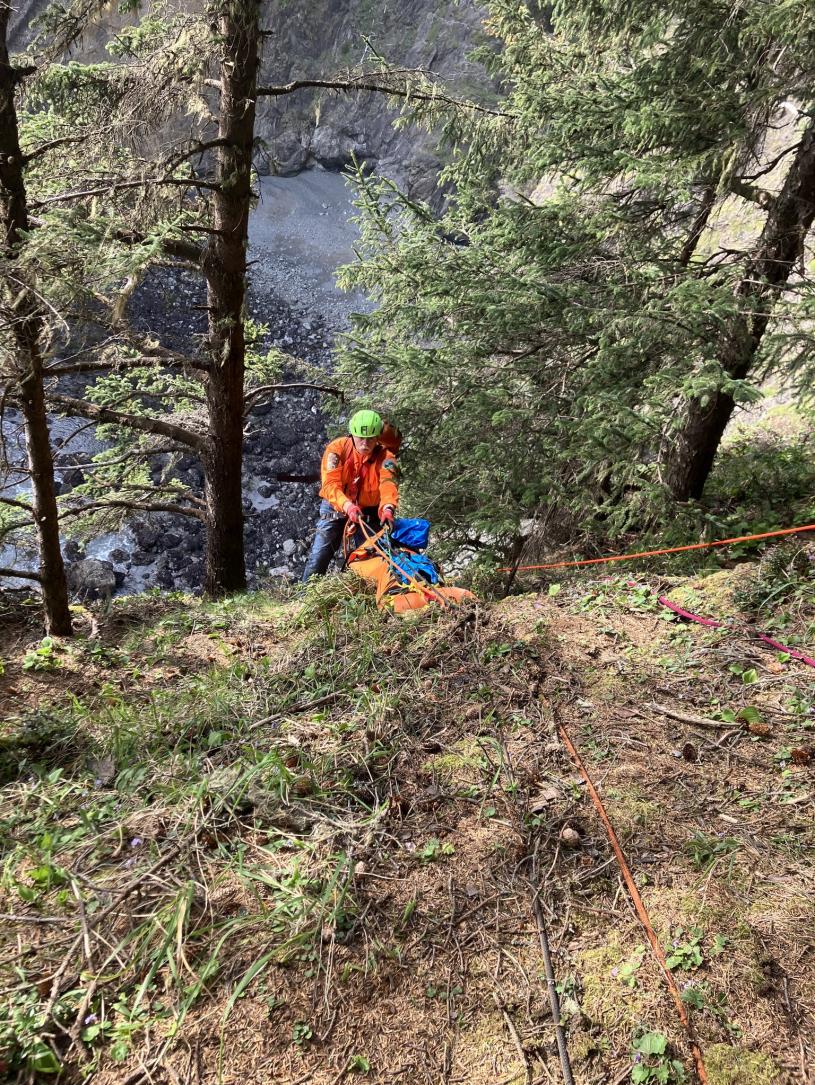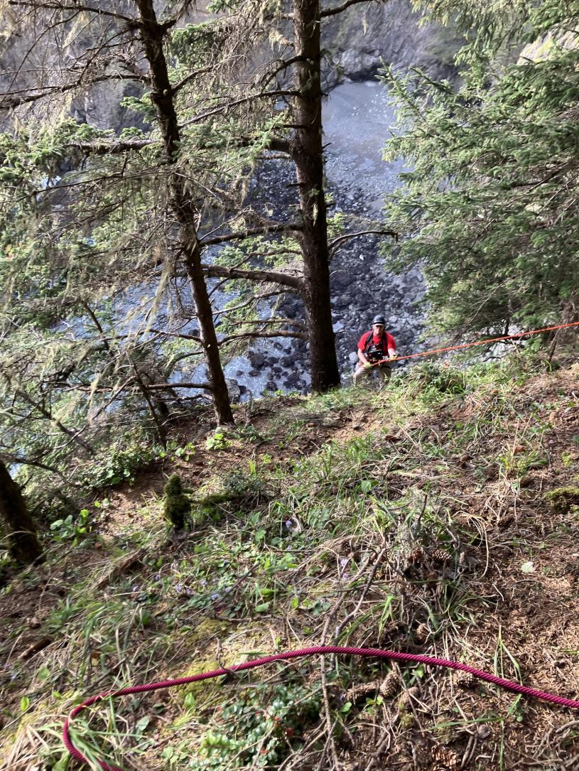 搜救隊成員及其他在場人員將死者遺體抬回山路,確認了他的身份。