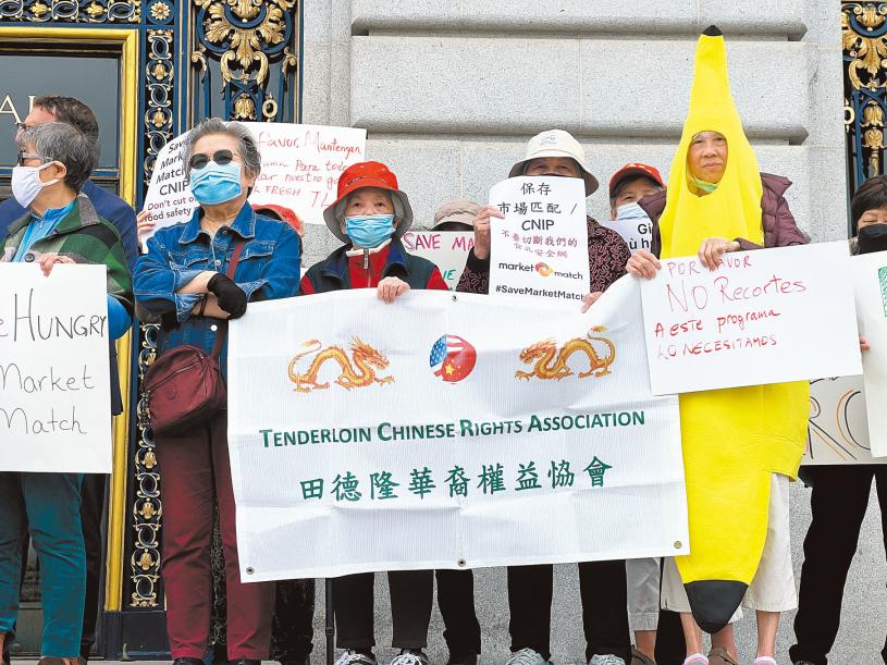 三藩市田德隆華裔權益協會等食品保障組織、農夫市場、居民以及為低收入民眾服務的團體,周二上午在三藩市市府門前集會,要求州府撤銷削減「市場匹配」(Market Match)項目的削減計劃。市參事會周二下午通過市參事潘正義提出的決議案,敦促州長保留這個已經有15年歷史、惠及超過10萬市民和本地農民的項目。