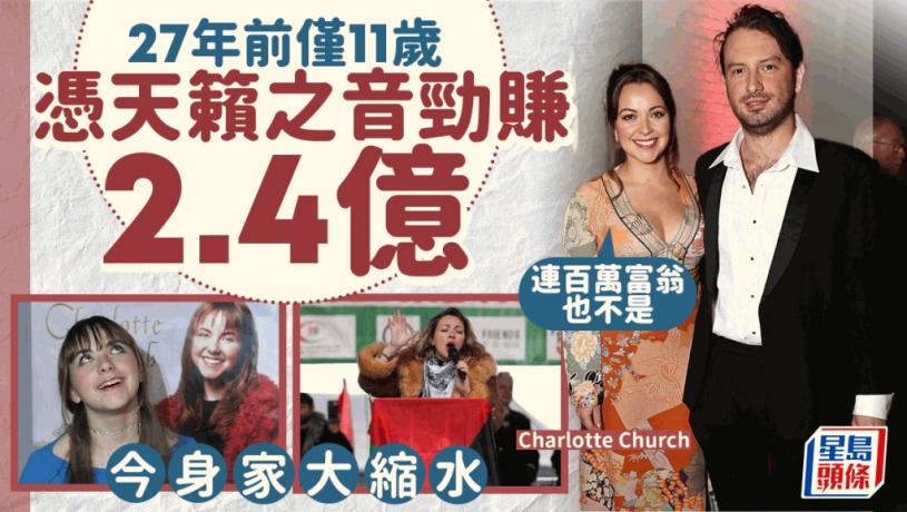 英國女歌手夏洛特·丘奇(Charlotte Church)早於27年前、她11歲時,身家已達2500萬英鎊( 折合約2.4億港元)。但到今天身家卻大幅蒸發,早前她被發現已將威爾斯豪宅出售,轉而住入價錢平許多的半獨立式住宅。她近日向媒體承認,現在連「百萬富翁」也稱不上。