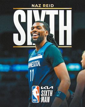 繼前一日76人新星馬克西當選年度進步最快球員後,NBA官方24日宣布,森林狼球員納茲.里德當選2023-24賽季的年度最佳第六人。他擊敗了國王的蒙克和雄鹿的波蒂斯。從上季開始,NBA將最佳第六人獎盃命名為「哈夫里切克獎」,當時效力凱爾特人的布羅格登成為首個哈夫里切克獎盃的獲得者。