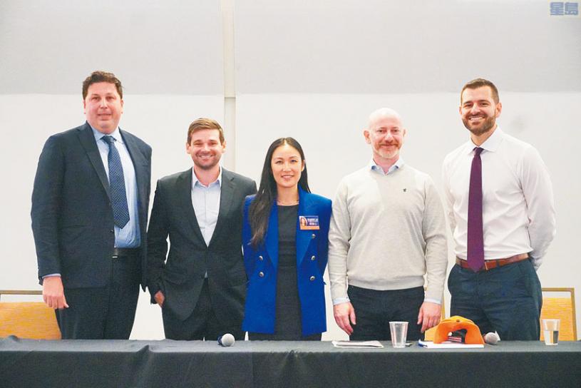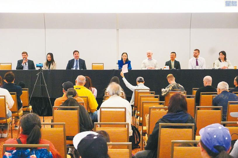 白蘭民主黨協會在華埠主辦的第三區市參事候選人論壇,昨天在華埠希爾頓酒店舉辦。出席的5位候選人:馬修.蘇克(Matthew Susk)、麥讚明(Moe Jamil)、黎慧心(Sharon Lai)、羅樂華(Eduard Navarro)、李爾德(Danny Sauter)自我介紹,發表政綱,全程用英語、粵語翻譯交替進行。