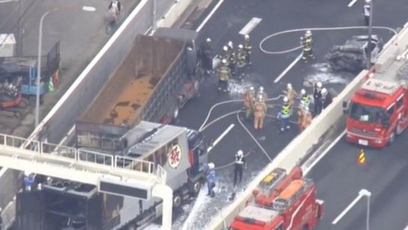 今早上午8時半左右,NHK直升機從現場拍攝的畫面顯示,多輛汽車和卡車完全阻塞高速公路的一條車道,多名消防隊員在受損的卡車和轎車附近救災,至少2部轎車被嚴重燒毀。