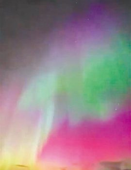 當南加州的天空變成紫色、粉紅色、綠色和黃色的絢麗電光時,欣賞者紛紛發出讚嘆。這場極光是由本週末襲擊地球的強烈地磁風暴所引起,在包括加州的全美國多個地區都可見,而曾加州南端的聖地牙哥到北加州,都有民眾目擊到這一壯麗景觀。