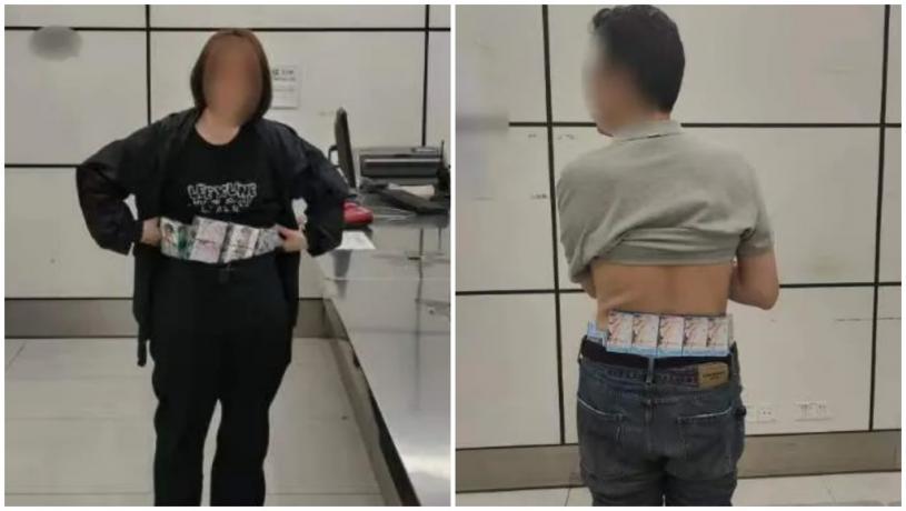 中國海關表示,近日,深圳灣海關在旅檢出境渠道查獲兩名旅客人身綁藏香煙出境案,共查獲香煙2040支。