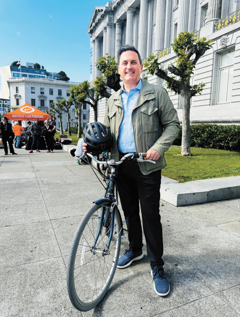 三藩市第11區市參事安世輝當天響應號召,騎單車回市府上班,他說這是欣賞城市景色的最佳出行方式。