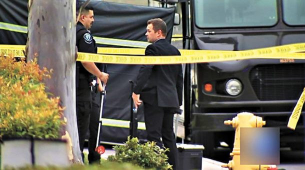 媒體空拍影片顯示,警方在UPS卡車旁設置警用遮篷,將犯罪現場附近區域用黃色膠帶封鎖起來。