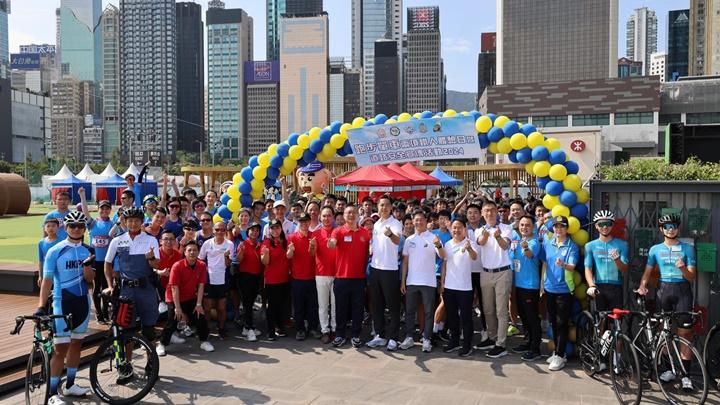 警方港島總區今天(18日)在灣仔及中環海濱一帶,聯同發展局及香港交通安全隊(港島及離島總區) ,舉辦「跑步單車兩項鐵人體驗日道路安全宣傳活動2024」,推廣單車安全。今次體驗活動有超過150名市民參加,由灣仔海濱休閑站起步,沿灣仔及中環海濱,到達中環碼頭外換乘單車,來回騎行共享徑一週後,沿路返回起步點完成體驗。