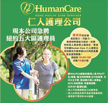 Human Care仁人護理公司現正招聘布碌崙、皇后區、曼哈頓、布朗士、史丹頓島、長島納蘇郡:
