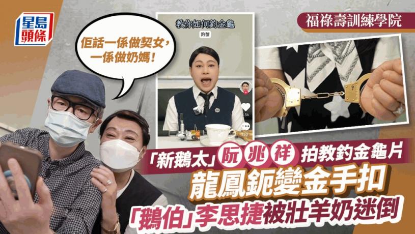 TVB節目《福祿壽訓練學院》四位主持今晚(19日)阮兆祥、王祖藍、李思捷與郭珮文齊模仿重演《東張西望》熱話何伯夫婦的故事。李思捷與阮兆祥分別扮演鵝伯與新鵝太,早前亦曾以此扮相現身《逆天奇案2》活動,不少網民都大讚好神似。而今晚節目播出,更見有郭珮文扮成「東張女神」梁敏巧訪問鵝伯與新鵝太,而王祖藍則化身新鵝太的18歲兒子,受訪時的對白更非常爆笑,玩盡何伯夫婦金句!