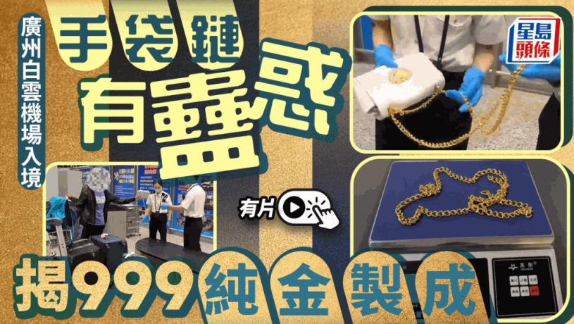 廣州白雲機場海關,截查2名入境旅客時,發現2人的手袋鏈,是用黃金製造。海關共檢獲「黃手袋鏈」兩條,共重799.4克。