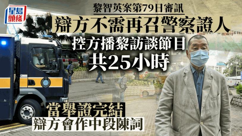 辯方透露不需要控方傳召其他警察證人作盤問。控方指鑑於上周五才收到辯方盤問專家證人鄒錦沛博士的要求,而鄒博士須明天才能安排到庭。辯方表示盤問鄒博士的時間不會太長,應該會少於半小時,並提議今天先播放黎智英的訪談節目《Live Chat with Jimmy Lai》及黎智英接受台灣媒體訪問的片段;控方預計播放片段需時共25個小時。