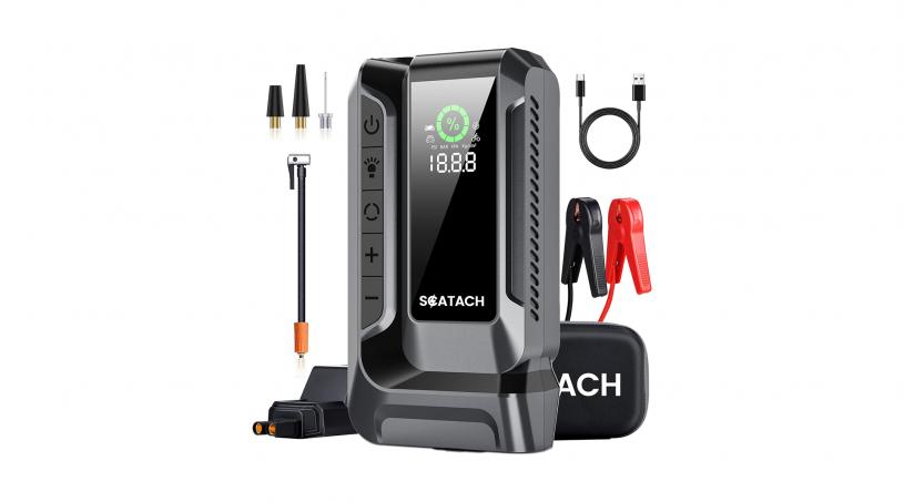 Scatach Q16 配備強大的 4000A 汽車緊急啟動裝置,適用於10.0L汽油和8.0L柴油發動機,讓你無論何時何地都能迅速啟動汽車。150PSI 的空氣壓縮機,確保你能隨時為輪胎充氣,無需再等待援助。內置顯示屏讓你輕鬆監控氣壓,每次充氣都能達到最佳效果。三種模式手電筒:配備緊急燈,為夜間緊急情況提供可見性,確保你的安全。Scatach Q16 還可作為便攜式電源,快速充電設備,無論是手機、平板還是其他電子設備,都能輕鬆應對。它集成先進的安全功能,確保操作安全無虞,讓你在使用時更加放心。便攜設計讓它成為旅行的理想伴侶,內附實用收納包,所有配件都能整齊收納,方便攜帶。Scatach 提供兩年的技術支持,專業客戶服務團隊隨時為你解答疑問,解決問題。包裝清單:Scatach Q16 汽車啟動跳線電源、實用收納包、智慧跳線、安全充氣線、氣門、USB Type-C 充電線和使用手冊。