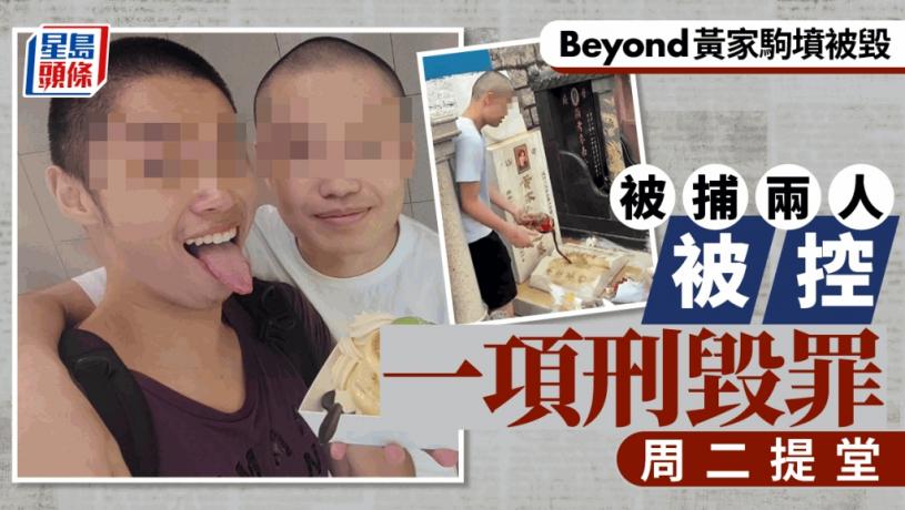 【黃家駒/BEYOND/黃家駒墳墓】樂隊Beyond已故主音黃家駒的墳墓昨日(19日)被人用鐵錘刑毀及淋潑汽水,事件令一眾Beyond成員及歌迷震怒,轟動全城,警方經調查後以涉嫌刑事毀壞拘捕兩名男子。至今日(20日),警方表示高度重視案件,觀塘警區重案組接手調查該案,經進一步調查後,被捕兩人合共被控一項刑事毀壞罪,案件將於明日(21日)上午在觀塘裁判法院提堂。