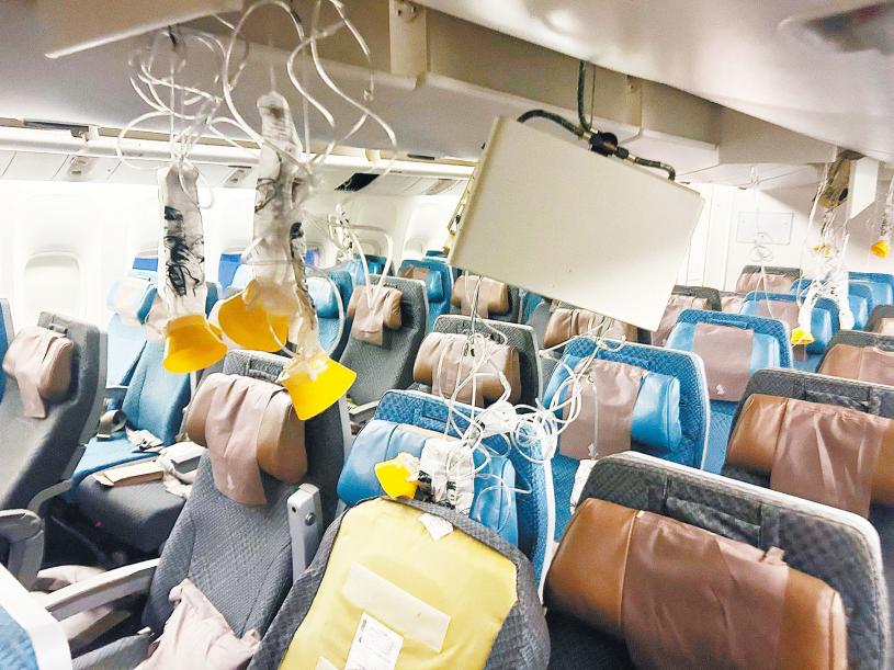 而X平台流傳的機艙內畫面顯示,從機頭至機尾滿地雜物,氧氣面罩彈開,有天花板被撞破、管線半天吊;有空姐雖在座位扣上安全帶,但口鼻流血。新航發聲明表示,該公司對遭受創傷的乘客和機組人員深表歉意,向死者家屬致以深切哀悼。