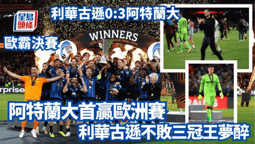 力圖成為歐洲球壇首支不敗三冠王的利華古遜,這個美夢在周三終於告終。他們在愛爾蘭都柏林舉行的歐霸決賽,以0:3不敵意甲球隊阿特蘭大,未能繼贏出德甲後再下一城,本季所有比賽51場不敗的走勢亦告一段落。反觀阿特蘭大贏下隊史首個歐戰錦標,亦是球隊成立116年第2個冠軍,前鋒盧卡文(Ademola Lookman)大演帽子戲法更威風八面。
