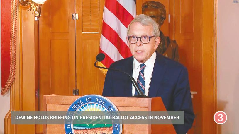 俄亥俄州州長呼籲州議會召開特別會議,確保11月大選的選票能印上現任總統拜登的名字,並批評議員遲遲沒有行動令人失去耐心,情況「荒謬、不可接受」。