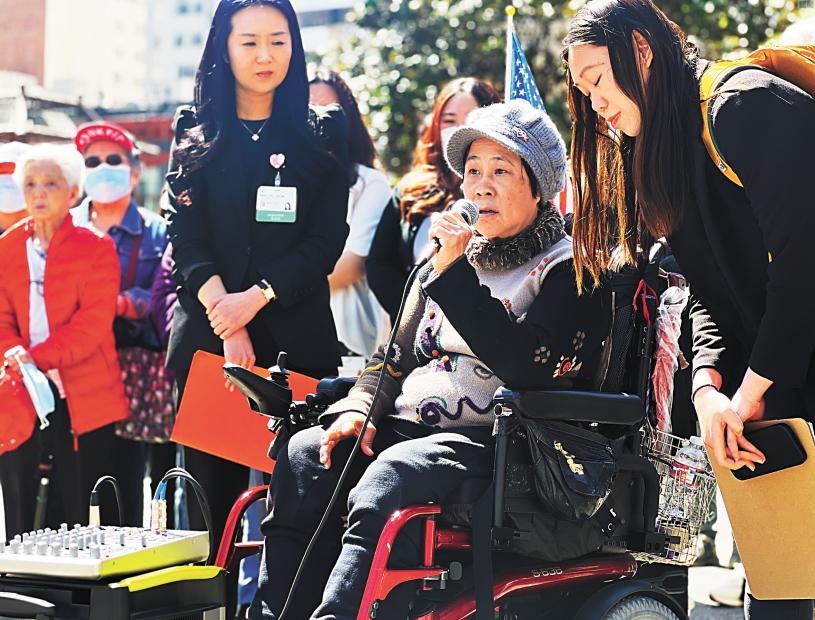 68歲的華裔居民張蔓薇是小兒麻痺症患者,又經歷兩次車禍,長期被病痛困擾,冬季時常常手腳疼痛不能起身。過去7年多,她一直在三藩市東北醫療中心(NEMS)靠針灸緩解疼痛,恢復行動。聽聞加州可能取消對醫療白卡針灸服務的承保,張蔓薇昨日上午坐輪椅到華埠花園角加入集會,要求州府保留針灸服務的撥款。