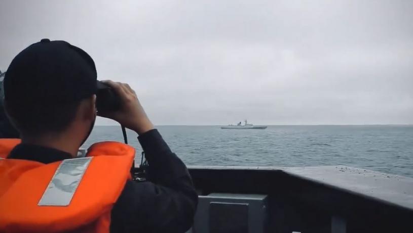 台軍昨日也發出兩岸軍艦近距離對峙的視頻。在台海軍「鄭和艦」的軍人,肉眼都能清楚看到大陸「南通艦」上的中國國旗。