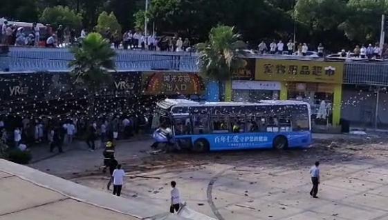 江西巴士失控,撞破圍欄衝入地下廣場。