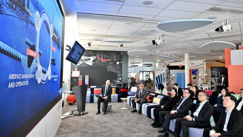 財政司司長陳茂波今日(巴黎時間5月25日)早上繼續法國巴黎的訪問行程。他今早在創新科技及工業局局長孫東和政制及内地事務局副局長胡健民的陪同下,到訪負責營運及管理巴黎戴高樂機場以及全球超過20多個機場的Groupe ADP的創新中心,了解該集團和其創新中心在推動智慧機場和低碳轉型建設、支持巴黎奧運、發展低空空運等方面的工作,以及它們與航空相關初創企業在創新科技上的合作事宜。