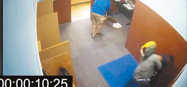 閉路電視畫面可見,一名老師與史密斯角力。PIX11截圖