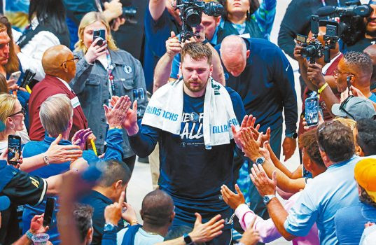 獨行俠距離總決賽又近一步,東契奇賽後與球迷一起慶祝。路透社