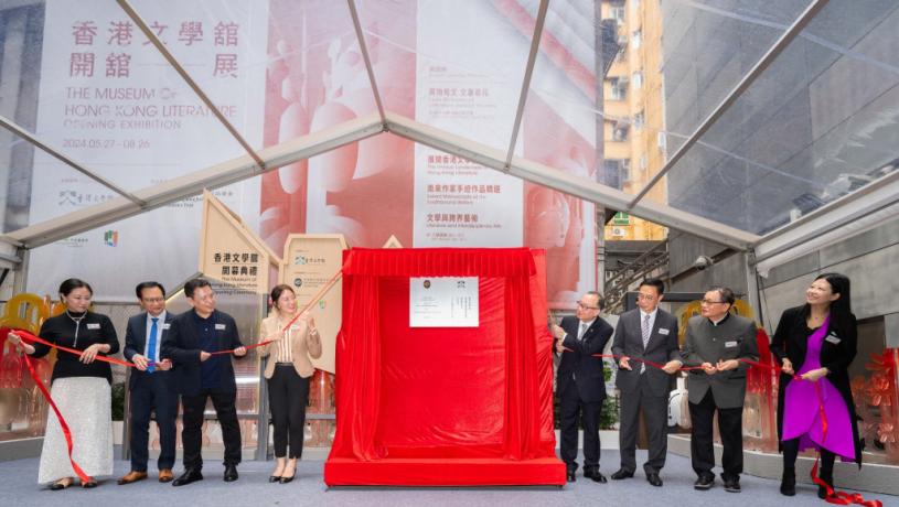 中聯辦副主任盧新寧、文體旅局局長楊潤雄、馬會副主席廖長江、中國作家協會副主席李敬澤、香港文學館館長潘耀明等主持揭牌儀式。