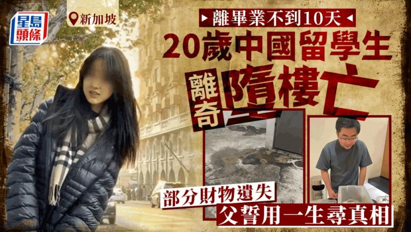 一名中國女留學生在新加坡墮樓身亡,遺體在住所相鄰單位底層天井處被發現。李父稱女兒原計劃畢業回國,事發前無異樣。部分財物遺失,警方調查中。李父希望查清死因。