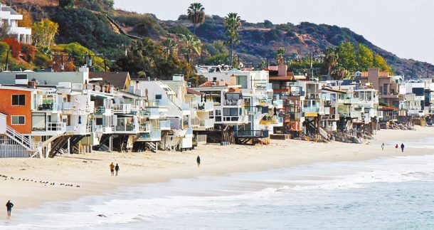 南加州馬里布沙灘民宅下方有可能完全會被海水侵蝕。美聯社