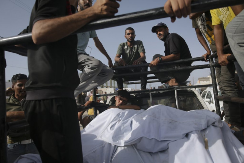 巴勒斯坦難民運送被殺親人遺體。美聯社