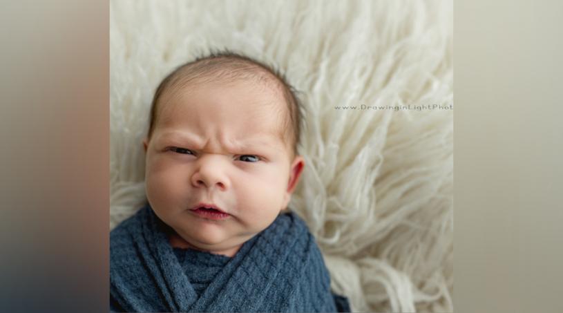 卡森說嬰兒的媽媽已經習慣這種表情了。而在拍攝期間,他沒有哭,也沒有大驚小怪,他只是皺著眉頭。