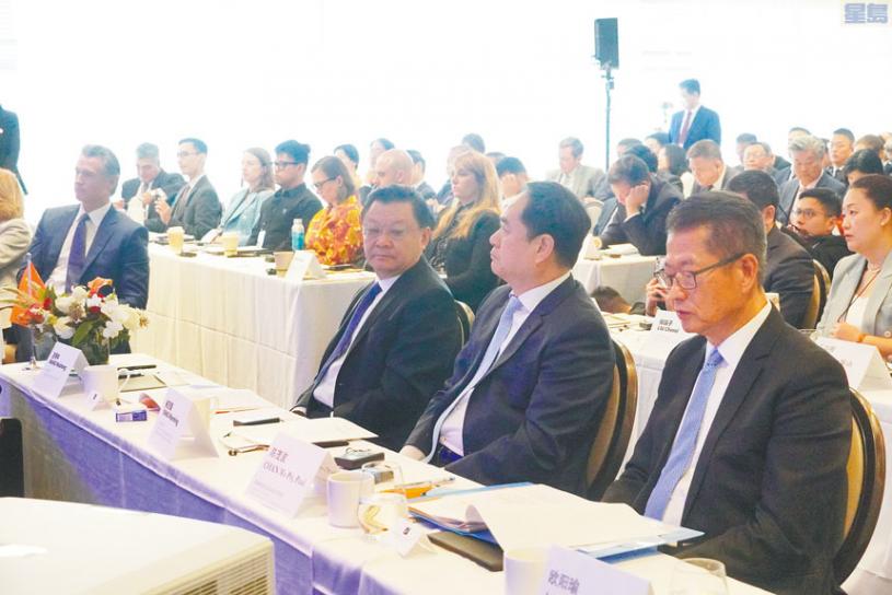 陳茂波提到希望香港可以做好美國與大灣區內地城市的溝通橋樑,特別感興趣的領域是風電和綠色金融。歐陽瑜則介紹從2024年到2028年,將對綜合旅遊休閒業、現代金融業做出細化規劃和部署,打造演藝之都。