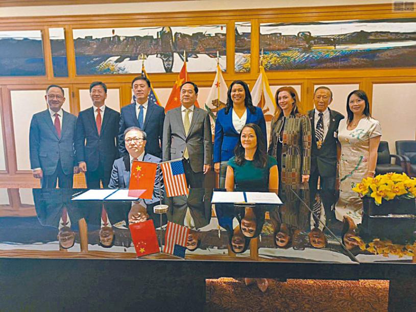 深圳市與三藩市政府28日在三藩市市政廳簽署友好交流合作備忘錄。中國駐舊金山總領事張建敏同中國人民對外友好協會會長楊萬明、三藩市市長布里德、深圳市常務副市長陶永欣出席並致辭。三藩市行政官朱嘉文等政、商、僑界代表出席。