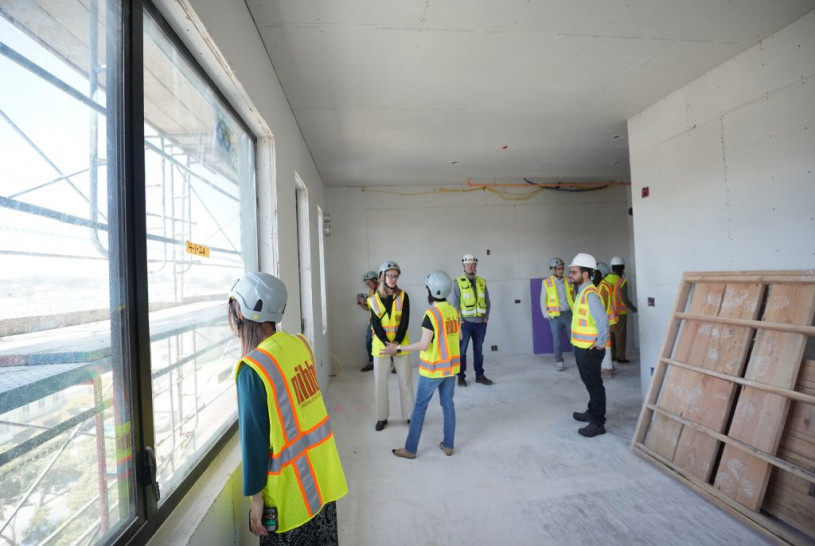 在工地現場,第一區市參事陳詩敏、開發與管理該物業的「田德隆鄰里發展」(Tenderloin Neighborhood Development Corporation,簡稱:TNDC)代理共同行政總監Katie Lamont、首席投資組合官Gordon Leung(梁穎宇)、房屋發展助理項目經理Sam Ruiz、住宅開發高級項目經理Colleen Ma(馬純玉),向記者介紹該長者公寓的規劃、工程進度、申請方法。