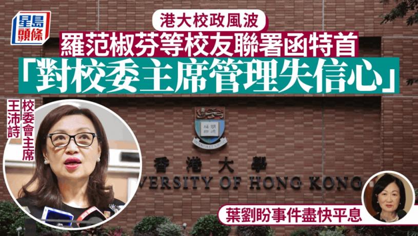 香港大學校委會風波未了,校長張翔致函教職員,指上月底校委會未經通知下,審議多名副校長人選,「違反既定程序」,事前亦沒有諮詢其意見,又指大學管理層對此一無所知。行政會議召集人、港大校友葉劉淑儀今日(6日)透露,有校友已寫信至行政長官李家超,並指國家十分關注港大管治,作為校監特首應處理這件事,期望事件可以盡快平息。她續說,副校長是校長的團隊成員,強調不論委任權在誰手中,校長都應該獲得充分的諮詢權利,期望校委會和校長雙方在管治上可以有更為和諧的關係。