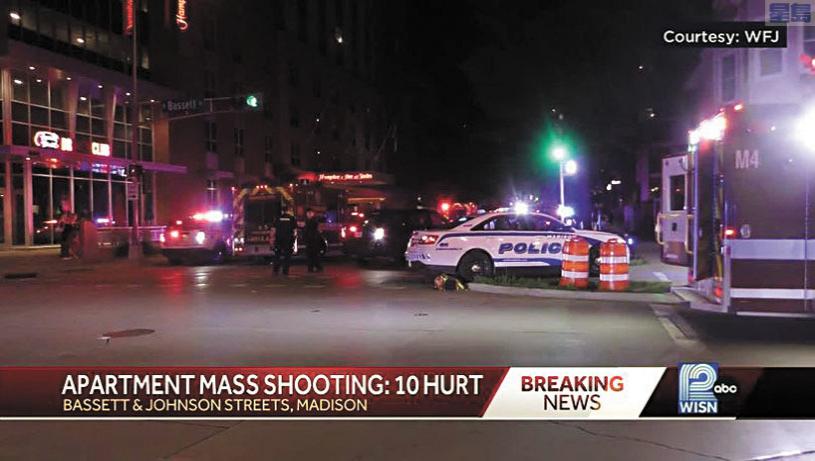 威斯康辛州首府麥迪遜(Madison)市中心發生槍擊事件,有人在某棟豪華公寓屋頂舉行派對期間發生衝突,結果造成至少10人受傷,最年輕傷者年僅14歲。警務處長巴恩斯(Shon Barnes)形容,案中無人死亡堪稱「奇蹟」。