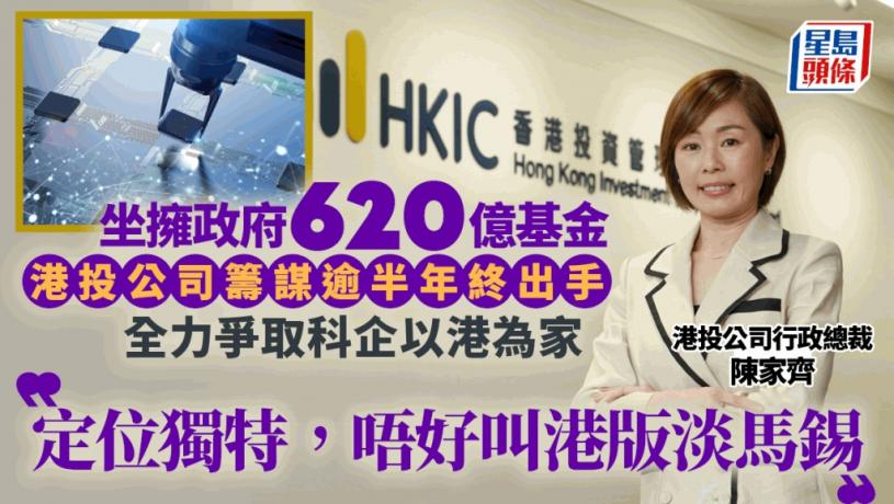 有「港版淡馬錫」之稱的香港投資管理有限公司,籌備逾半年後,頭炮於本周啟動。管理政府620億元資本的港投公司行政總裁陳家齊表示,已選定三大投資主題,包括人工智能(AI)在內的硬科技、生命科技,以及新能源或綠色科技,預告每季均有項目落成。她指出,港投公司有雙重任務,除爭取合理回報,亦要求被投公司落戶、扎根,並以香港為家,著手推動香港生態圈發展。