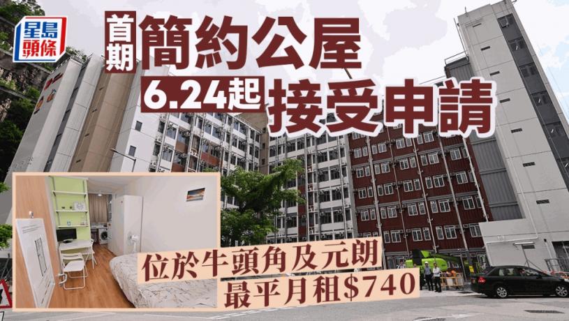 「簡約公屋」元朗攸壆路和牛頭角彩興路項目預計在明年第一季和第二季入伙,合共提供4,400個單位。房屋局長何永賢今日(13日)宣布,「簡約公屋」第一期將於6月24日起接受申請,7月15日或之前交回表示會優先處理。月租方面,攸壆路最平一二人單位月租740元;彩興路一二人單位,租金約1,110元,四五人單位,租金約2,650元。