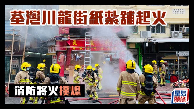 今(13日)中午12時許,荃灣川龍街一間紙紮舖閣樓冒煙,店員大驚報警,消防到場喉灌救,將火撲熄,事件中無人受傷,起火原因仍待調查。據了解,紙紮舖地下做生意,閣樓主要擺貨,負責人陳先生當時正在看舖,嗅到燒焦味,發現閣樓有濃煙冒出,於是報警。消防架起鋁梯靠近閣樓,打破玻璃窗向內射水灌救。