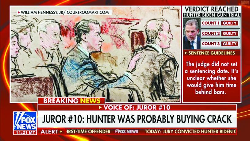 綜合Politico及《紐約時報》報道,陪審團這次僅用兩天時間,合共商議3小時零5分鐘後,便裁定亨特3項罪名成立。其中一名男性陪審員11日匿名受訪時表示,退庭之初他們曾經投票,當時的結果是6票對6票形成均勢,但不久後12人一致認為亨特有罪,理由是辯方雖然形容亨特一度成功戒毒,但相隔兩星期便故態復萌,令人質疑「他有沒有真的接受治療」,或者至少證明治療沒有成功。