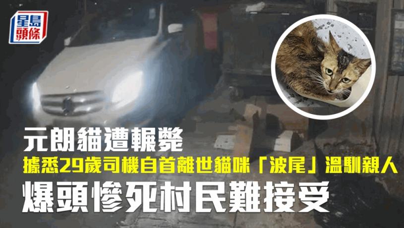 元朗發生一宗令人髮指的輾死流浪貓案件,據悉涉案29歲姓鄭Benz司機,已到元朗警署自首,涉犯下「不小心駕駛」及「發生意外後沒有停車」等三罪行,正被扣留調查。發現貓咪被輾過的村民表示,命喪輪下的貓咪叫「波尾」,約一年前開始在其村內出沒,雖然身體有毛病,但性格溫馴,也願意親近村民。