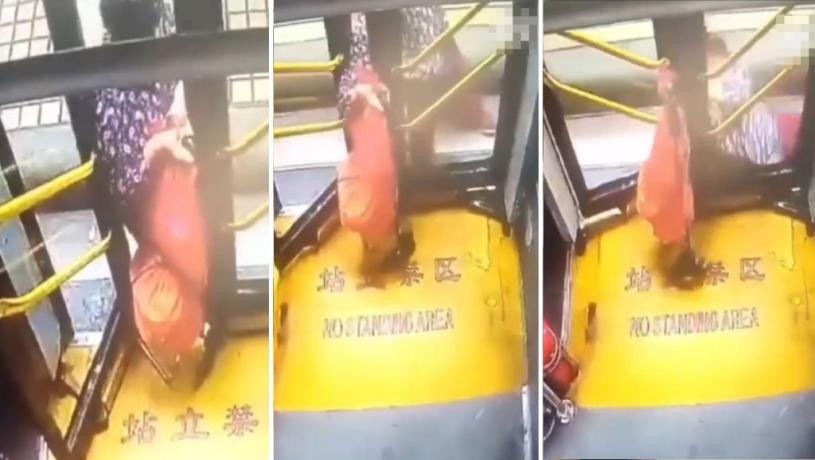 據車門鏡頭拍攝到的影片所見,老婦當時拿著手推車下車,當其走出車門外時,手中手推車還在車門處。但當車門關閉時,手推車同時也被車門夾住。隨著巴士啟動,門外的老婦也跌倒在地上。
