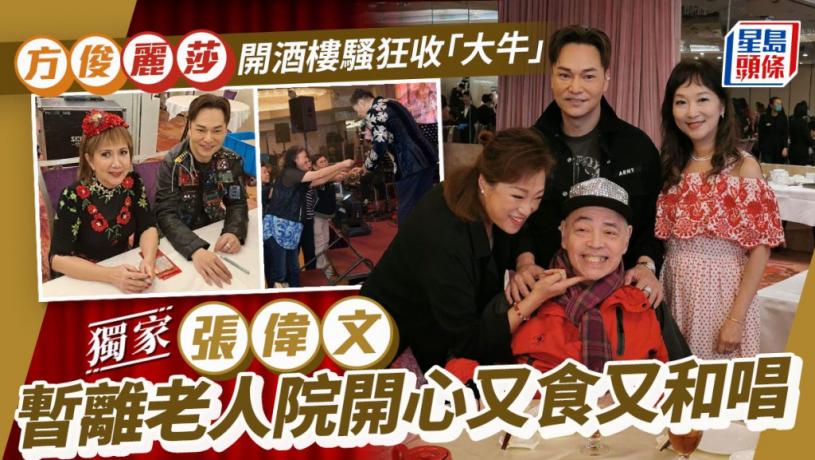 72歲「靚聲王」張偉文9年前受腰患、糖尿病及腳痛困擾需以輪椅代步,長住老人院冇乜「細藝」,全靠徒弟方俊帶他周圍去。上周五端午節前夕,方俊和「新加坡歌后」麗莎在元朗一間酒樓登台,張偉文都係席上客,難得離開老人院出去鬆一鬆,張偉文笑晒口全晚食唔停,仲跟住台上方俊係咁唱,好有歌癮喎。採訪:方騫平