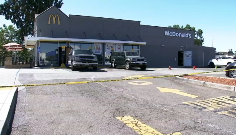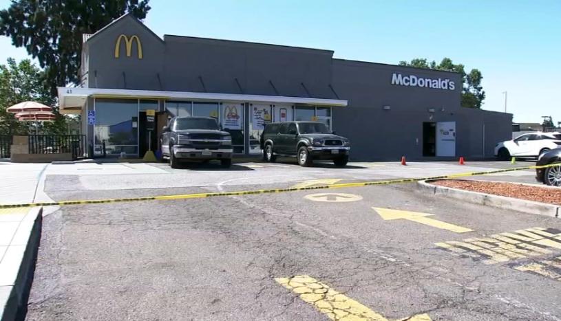 苗必達市麥當勞遭縱火。ABC7電視畫面