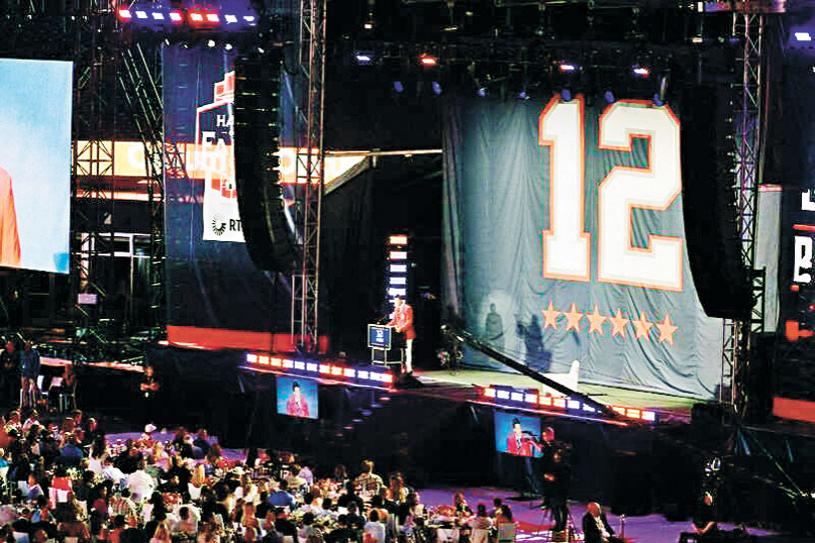 近日在新英格蘭愛國者主場吉列體育場所舉行的一場盛大儀式上座無虛席,史上最偉大傳奇四分衛布雷迪(Tom Brady)正式入主愛國者隊名人堂,愛國者老闆克拉夫特也宣布,布雷迪的背號「12」號球衣將正式退役。