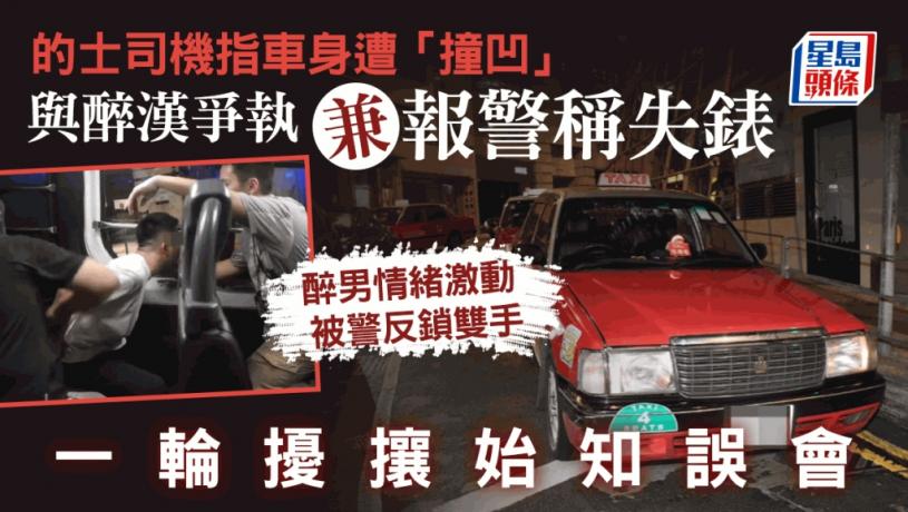 中環發生盜竊疑雲。今日凌晨3時許,雲咸街44號附近的士站頭,一名30歲的士司機報稱,2名年約3、40歲男子路過時,「撞凹」其的士車身,與對方爭執起來,發生推撞,其後更發現自己手上的手錶不翼而飛,於是報警求助。警員到場向眾人問話,其中一名身上有酒氣的男子情緒激動,一度遭警方以手銬「招呼」,並帶上警車。經一輪擾攘後,的士司機記起自己今日根本無帶錶外出,案件改為誤會和糾紛,無人被捕。