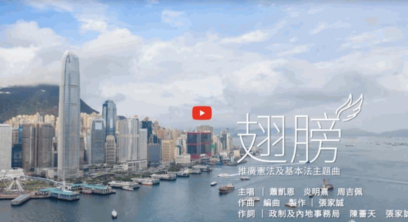 政制及內地事務局與香港電台聯合製作、旨於推廣憲法及基本法的全新主題曲《翅膀》,宣傳短片今日開始在電視台首播,片中邀得著名小提琴家姚珏演奏,且由年輕人氣歌手炎明熹、周吉佩和失明女高音蕭凱恩獻唱,片中亦邀來「共創明Teen合唱團」女學生粉墨登場,洋溢活力朝氣。