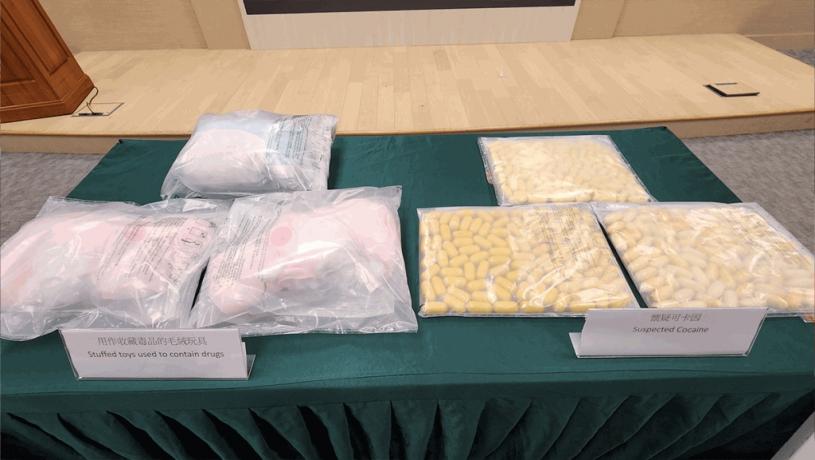 關員在其手提行李篋內發現3隻內粒藏物體的毛公仔,每隻毛公仔均有重新封口的痕跡,隨即打開檢查,發現內含262粒可卡因,約重6公斤,市值約550萬元,隨即拘捕該名46歲男子,案件交由海關毒品調查科跟進。